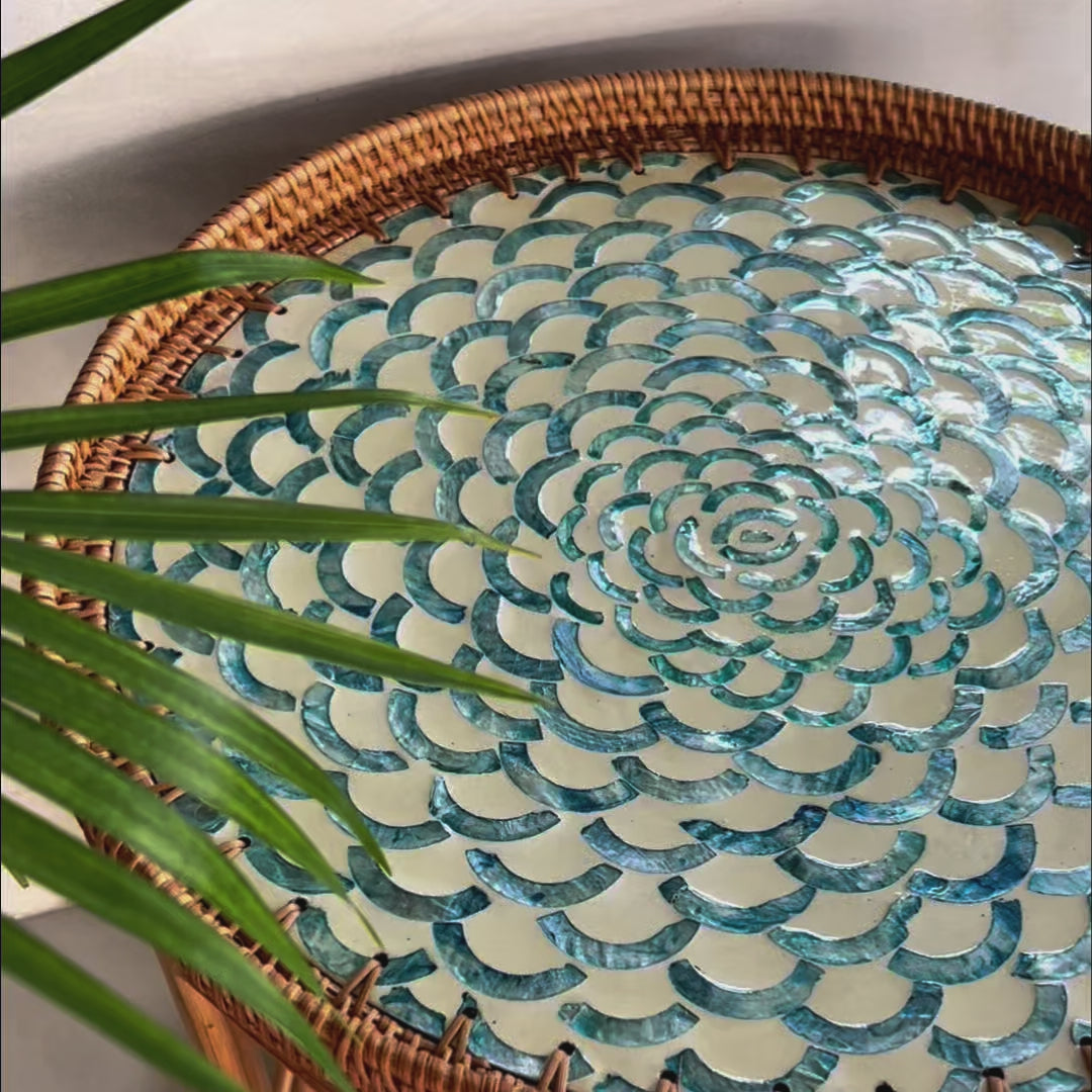 Elevate your living space with the Bloom Rattan Table Set, meticulously handcrafted to showcase the serene beauty of the Whitsunday beaches. More than just furniture, each table is a distinct piece of art, designed in Australia and featuring a unique mother of pearl inlay that captivates and reflects light, reminiscent of a blooming flower.